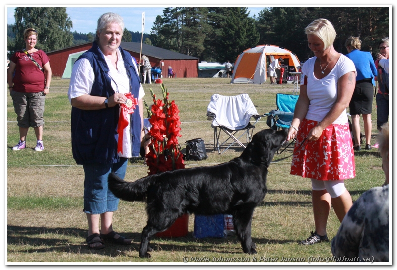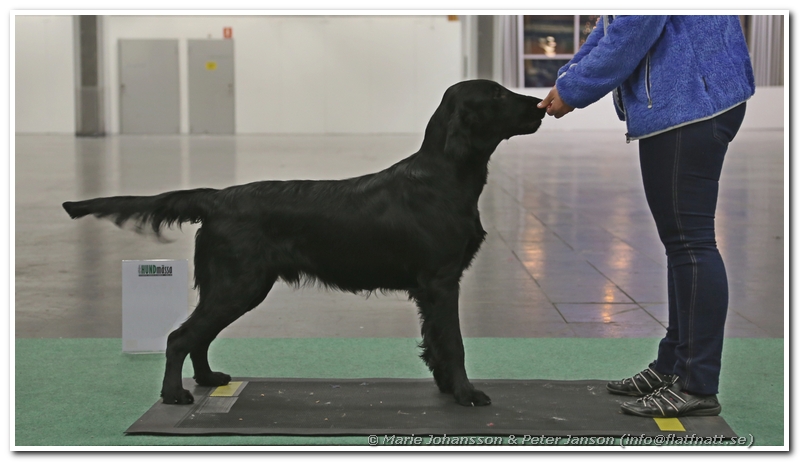 För oss började dagen med handlings-hjälp i valpklass hane där Peter visade Ernie (Flatterhaft Double Eagle) som trots att han tyckte det var lite otäckt med allt stoj visade sig såpass bra så att han blev 4 i klassen med ett HP.