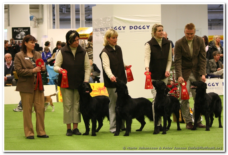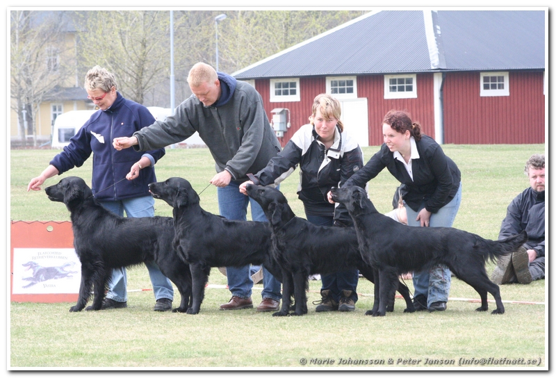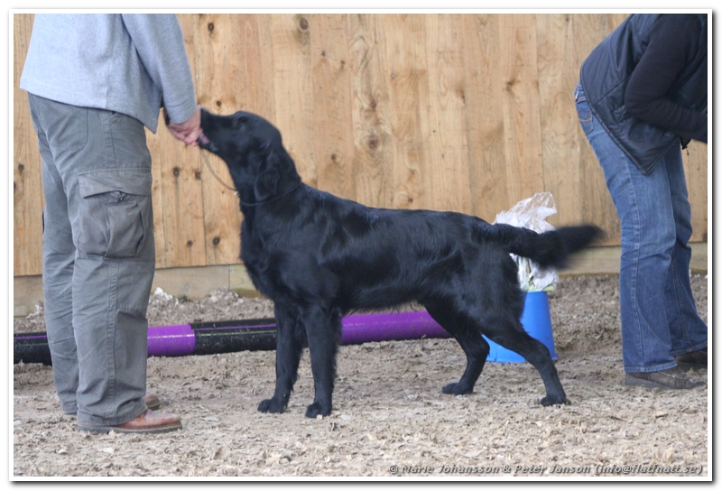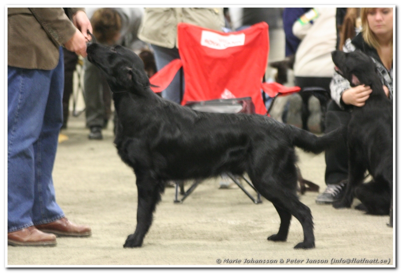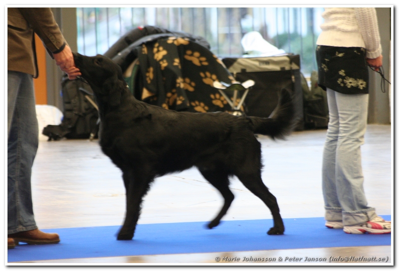 Det var ju inte speciellt många flattar anmälda och vi hade fått nummer 6 i ringen så det var till att ladda och förbereda dagens uppvisning tämligen omgående efter ankomst. Fast det är klart, man måste ju ta sig tid att hälsa på både vänner och konkurrenter vid ankomster.