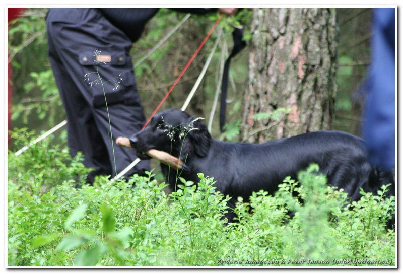 Även om inte Neo egentligen skulle vara med blev det ett litet spår över till honom också. Vi hade nog på känn att denna lilla kille skulle klara spårning bra eftersom han är så otroligt lugn och metodisk i allt han gör. Mycket riktigt gick han lugnt och sakta fram och var klockren i spåret. Han hittade snart klöven i slutet på spåret. Han var inte lite mallig när han gick tillbaka med klöven i munnen. Struttade riktigt runt som en tupp och skulle visa alla vad han hittat. 🙂