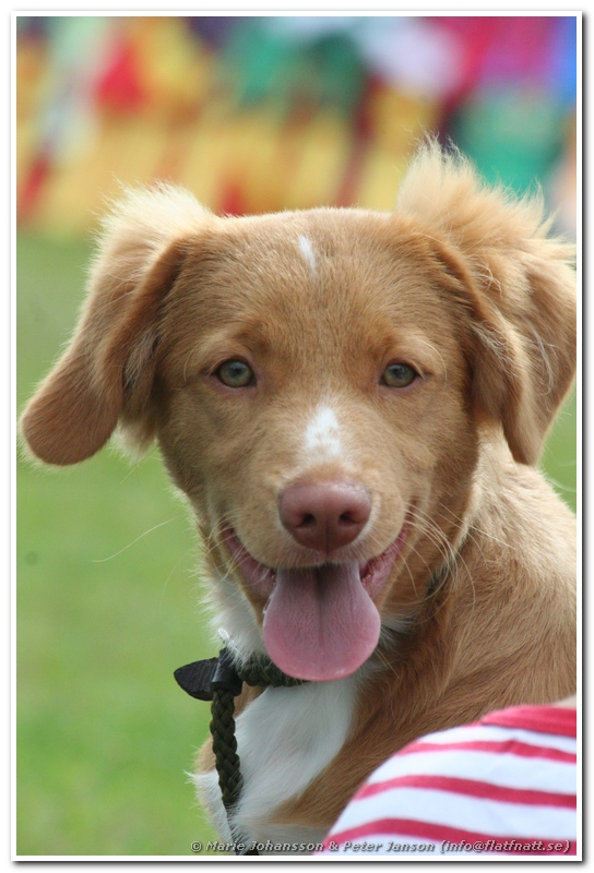 Även Torkels syster Flatterhaft Hoppla Kerstin (kallad Maja) ställde ut. Maja lekte tyvärr lite med kopplet men när hon sprang bra rörde hon sig jättefint. Sedan ställde Anna upp Maja jättefint. Tyvärr räckte det inte för att övertyga vår norske domare om att Maja skulle med till konkurrensen. Vi tycker dock att Anna och Maja gjorde jättebra ifrån sig och är övertygade om att med träning och större utställningsvana kommer snart framgångarna i ringen. Heja heja och lycka till från Team Torkel. 🙂