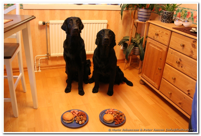 Dessa två dagarna har varit minsta sagt framgångsrika så idag har vi firat rejält. Skumpa till husse&matte och god mat till både oss och killarna. 🙂