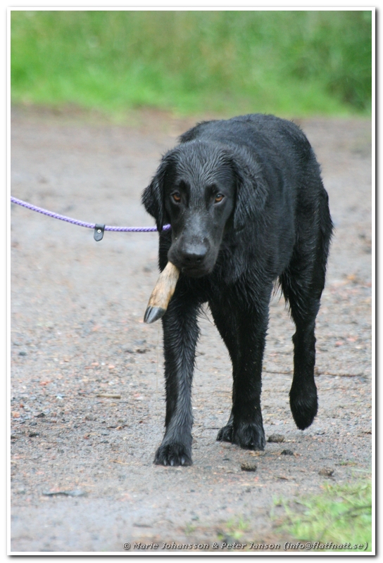 Han hade svårt att komma igång efter uppstampet men efter lite snurrade hittade han spåret, plöjde ner nosen och satte iväg i spåret. Han spårade lugnt och fint, klarade vinklarna bra (sneddade lite i en) och hade inga större problem någonstans. Även han gick rakt på klöven och gick spåret på 17 minuter.