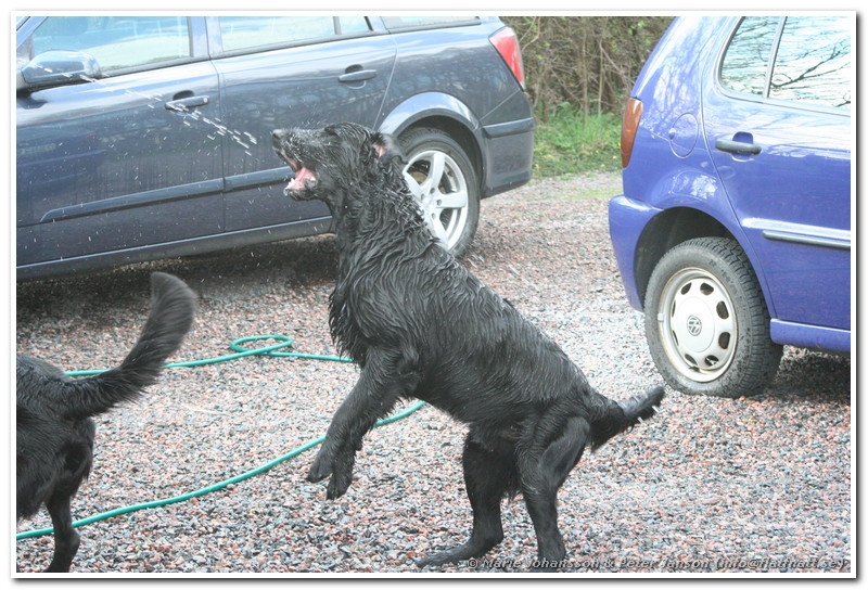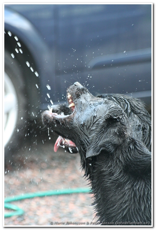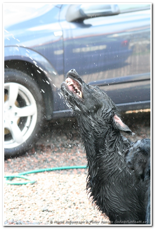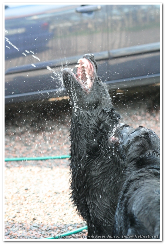 Om man inte hade veta bättre skulle man ju kunna tro att Flatcoated Retrievers gillar vatten. 🙂